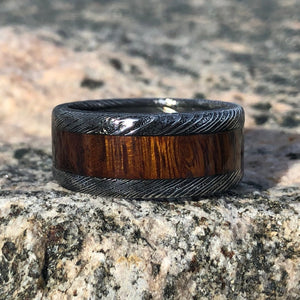 This gorgeous 10mm ring is made out of Damascus Steel. Our rings are made by the best jewelry artisans that the industry has to offer, and each ring is finished by hand. These rings have a comfortable fit to ensure that the ring will rest comfortably on your finger throughout the day. This Damascus ring features a premium finish as well as a wide 5mm Ironwood inlay. Let us make you a ring that is unique to your style, something you can cherish for a lifetime! With quality and price that is unbeatable, you can't go wrong when you order today!