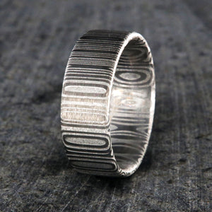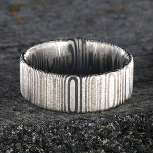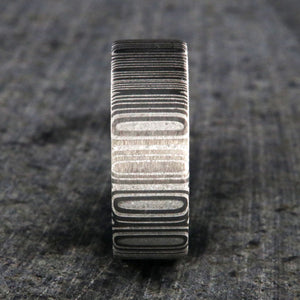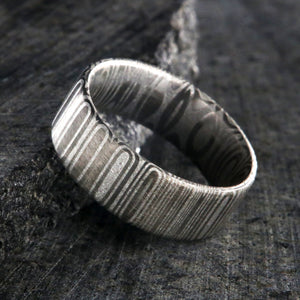 Bright and clean are the hallmarks of this Damascus steel wedding ring giving it a truly royal appearance. This Damascus steel wedding ring is made with care and precision to ensure comfortable all-day wear and durability for the everyday activities of life.