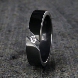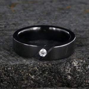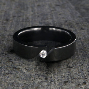 This beautiful 6mm bypass tension set ring features a gorgeous 3mm round white sapphire. Our rings are made by the best jewelry artisans that the industry has to offer, and each ring is individually finished by hand. This ring has a comfort fit band to ensure that it will rest comfortably on your finger throughout each day. Each and every ring is custom made per order in the United States. This ring also features a high shine polish finish giving this ring a brilliant shine. Each ring is custom made per order and has a quality that you can not match.
