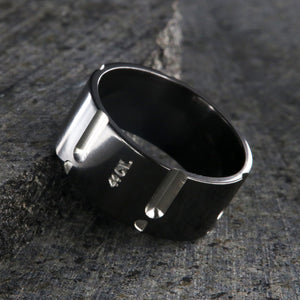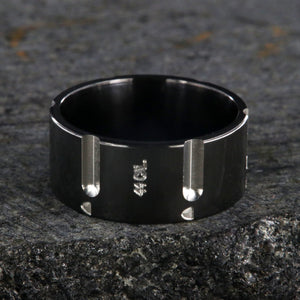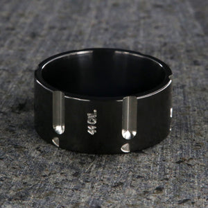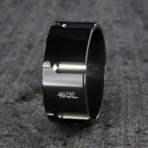 This beautiful 10mm Black Zirconium ring features a fun 44 Caliber design on it. Our rings are made by the best jewelry artisans that the industry has to offer, and each ring is individually finished by hand. This ring has a comfort fit band to ensure that it will rest comfortably on your finger throughout each day. Each and every ring is custom made per order in the United States. This ring also features a high shine polish finish giving this ring a brilliant shine. Each ring is custom made per order and has a quality that you can not match.