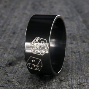 This beautiful 10mm Black Zirconium ring features a fun design of Texas Holdem Cards on it. Our rings are made by the best jewelry artisans that the industry has to offer, and each ring is individually finished by hand. This ring has a comfort fit band to ensure that it will rest comfortably on your finger throughout each day. Each and every ring is custom made per order in the United States. This ring also features a high shine polish finish giving this ring a brilliant shine. Each ring is custom made per order and has a quality that you can not match.