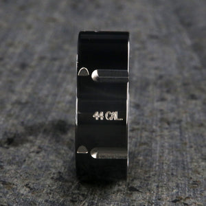 This beautiful 8mm Black Zirconium ring features a fun 44 Caliber design on it. Our rings are made by the best jewelry artisans that the industry has to offer, and each ring is individually finished by hand. This ring has a comfort fit band to ensure that it will rest comfortably on your finger throughout each day. Each and every ring is custom made per order in the United States. This ring also features a high shine polish finish giving this ring a brilliant shine. Each ring is custom made per order and has a quality that you can not match.