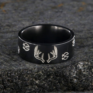 This beautiful 10mm Black Zirconium ring features a fun design of a deer rack and tracks on it. Our rings are made by the best jewelry artisans that the industry has to offer, and each ring is individually finished by hand. This ring has a comfort fit band to ensure that it will rest comfortably on your finger throughout each day. Each and every ring is custom made per order in the United States. This ring also features a high shine polish finish giving this ring a brilliant shine. Each ring is custom made per order and has a quality that you can not match.
