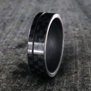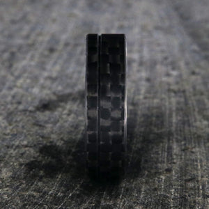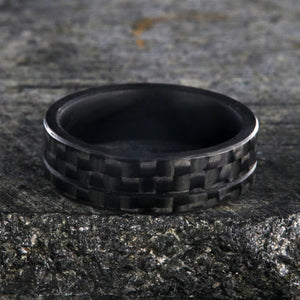 Sleek and Stunning look, this Black Carbon Fiber 7mm wide Flat Profile ring made in with a 1mm off-center groove, is Custom made to be both fashionable and comfortable with an inside comfort fit design. The perfect lightweight and durable ring for the fashion-forward person in your life.