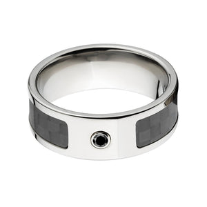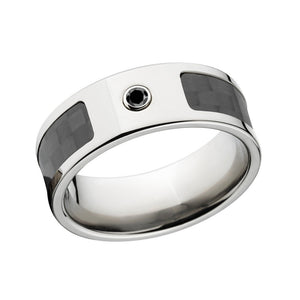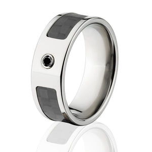 This ring is a true work of art! It is made with Carbon Fiber, Titanium, 14k Gold Bezel, and a stunning .06 Black Diamond. If you want a unique ring that shows your personality this just may be the ring for you. It includes a deluxe comfort fit and a lifetime warranty. This ring is proudly made to order in the USA by skilled artisans and jewelers who understand quality.