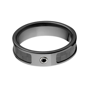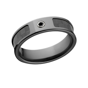 This ring is a true work of art! It is made with Carbon Fiber, Black Zirconium, 14k Gold Bezel, and a stunning .04 Black Diamond. If you want a unique ring that shows your personality this just may be the ring for you. It includes a deluxe comfort fit and a lifetime warranty. This ring is proudly made to order in the USA by skilled artisans and jewelers who understand quality.