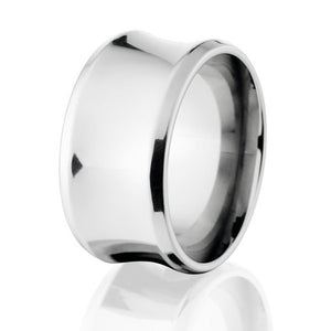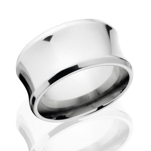 This is a comfortable fit 12 mm wide band that is custom-made to order by hand with Cobalt! This ring really stands out with a concave top profile / beveled edges and an ultra-polished finish. This band is perfect to show your loved one that your love has no end! The Cobalt ring's quality is unmatched and a Cobalt ring makes a great wedding band or everyday band as it is scratch-resistant, will not shatter or break, is similar in color to white gold and platinum.