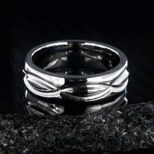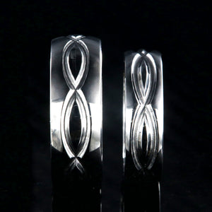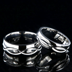 The men's ring is 8 mm wide, and the women's ring is 6 mm wide. Cobalt combines the unmatched shine of platinum with the hardness of tungsten and the lightweight characteristics of titanium.
