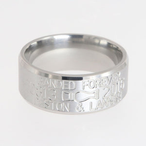 Create the perfect custom wedding band by adding unique and meaningful text on a titanium duck band. Use a significant date, birthday, wedding day, or anniversary to make the shine of this ring one-of-a-kind! Artisan jewelers handcraft this ring with utmost care and dedication to ensure comfortable all-day wear and durability for the everyday activities of life.