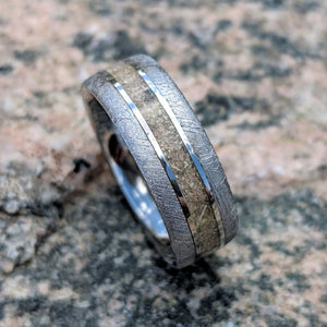 These rings are something special and truly out of this world. We have searched the globe for Gibeon meteorite to construct these beautiful memorial rings. The ring shown is 8mm wide with a slight rounded profile and features our deluxe comfort fit.