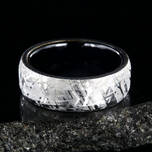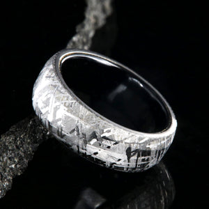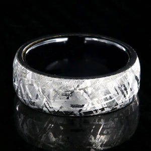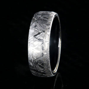 Like the metallurgist who creates beauty from something so cold and bleak, the pairing of the meteorite and black titanium brings life and depth to this wedding band for men. Cut and shaped in our shop, this handcrafted ring is made with care by artisan jewelers to ensure comfortable all-day wear and durability for the everyday activities of life.