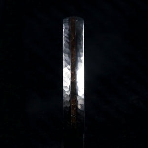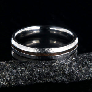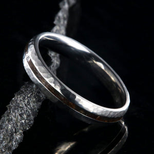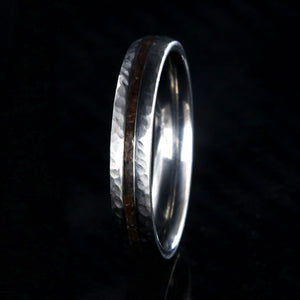 Just like a Tyrannosaurus rex's teeth, this dinosaur bone ring features precise edges in a fine, hammered texture and is highlighted by a thin inlay of dinosaur bone. Artisan jewelers made this ring with care and precision to ensure comfortable all-day wear and durability for the everyday activities of life.