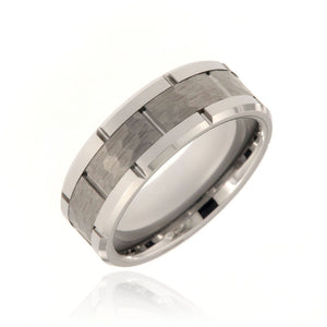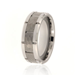Stunning 8mm tungsten carbide ring with two-tone hammer and polish finish. This ring includes a premium comfort fit and FREE personalized inside engraving. It comes with a lifetime manufacturer's warranty and satisfaction guarantee.