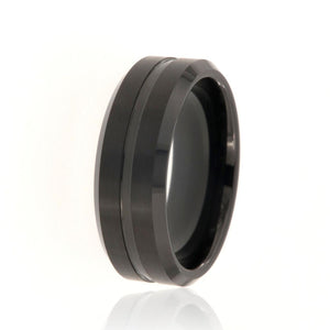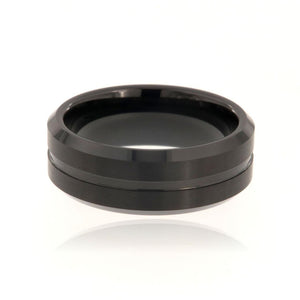 Heavy 8mm tungsten carbide band. Matte black finish with high polished beveled edges and center groove. This ring includes a premium comfort fit and FREE personalized inside engraving. It comes with a lifetime manufacturer's warranty and satisfaction guarantee.