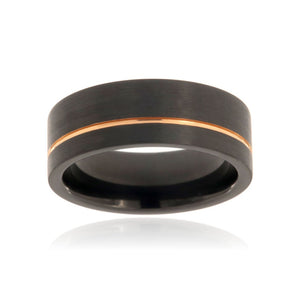 Stunning 8mm tungsten carbide ring with two-tone Rose & Black finish. This ring includes a premium comfort fit and FREE personalized inside engraving. It comes with a lifetime manufacturer's warranty and satisfaction guarantee.
