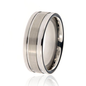Stunning 8mm tungsten carbide ring with a two-tone finish and dual topside grooves. This ring includes a premium comfort fit and FREE personalized inside engraving. It comes with a lifetime manufacturers warranty and satisfaction guarantee.