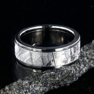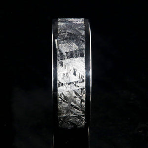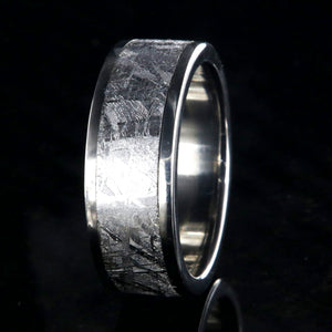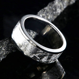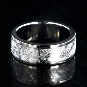 The high shine and strong walls of this men's meteorite ring commands respect for its beauty and simplicity. Cut and shaped in our shop, this handcrafted ring is made with care by artisan jewelers to ensure comfortable all-day wear and durability for the everyday activities of life.