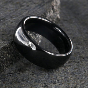 This amazing ceramic black ring is one of our most popular rings as it measures 8mm wide, has a rounded shape and a beautiful finish. The ring is popular with both men and women. The unisex ceramic ring has an inside arc comfort fit design. This allows for greater comfort than a standard fit when wearing your stunning black ring. The men's and women's black ceramic ring is perfectly finished with a high shine Polish finish!